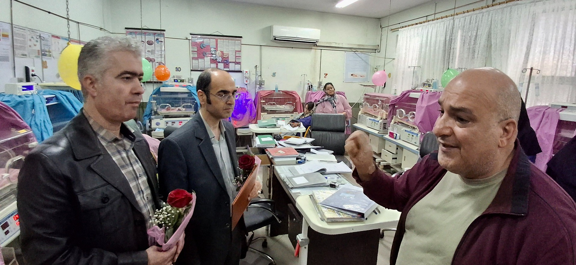 معاون بهداشتی و معاون درمان دانشگاه با حضور در مراکز آموزشی و درمانی ۱۷ شهریور و الزهرا (س) رشت، از پزشکان و پرستاران بخش‌های مراقبت ویژه نوزادان دو بیمارستان تقدیر کردند.