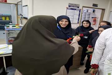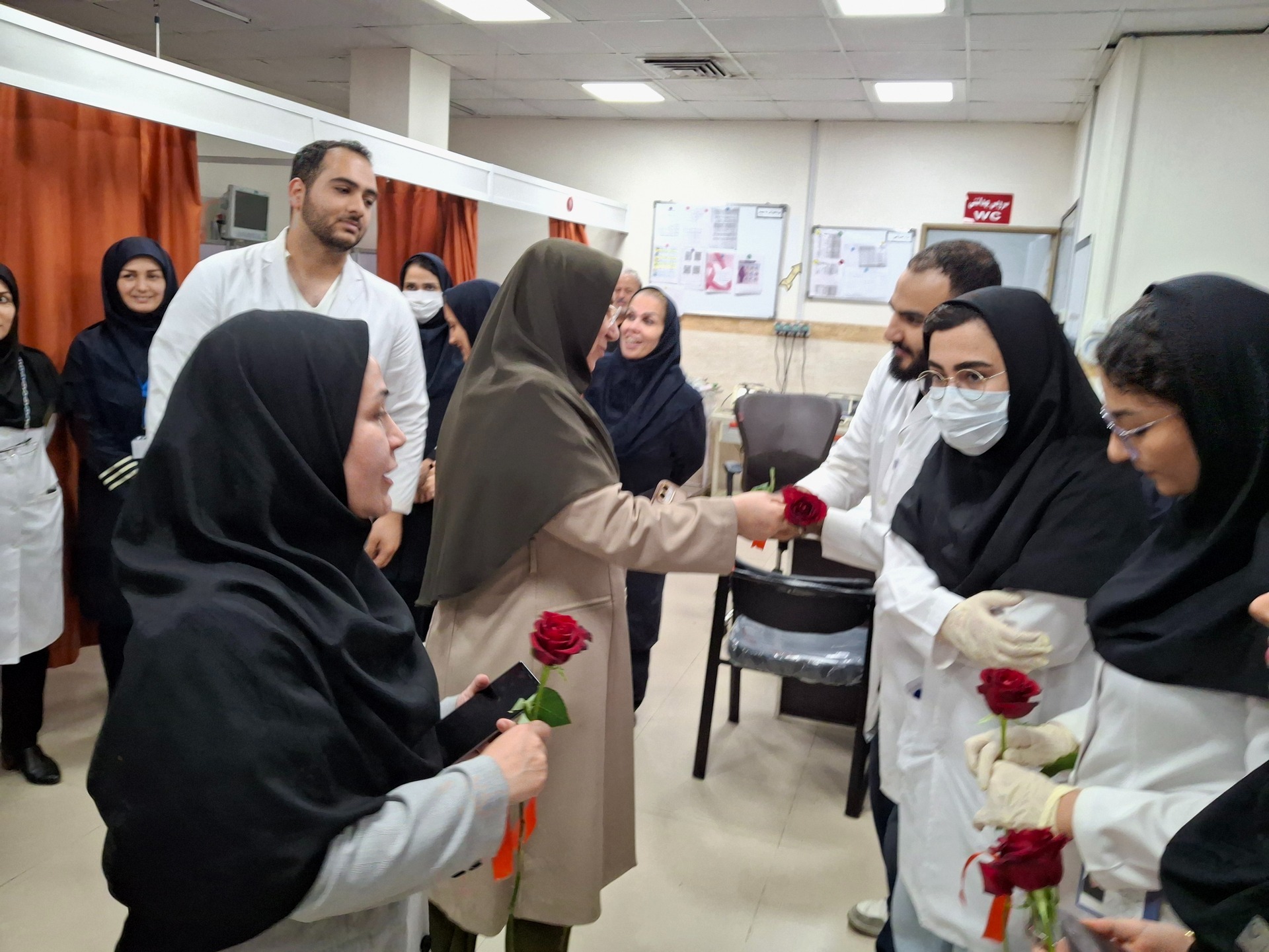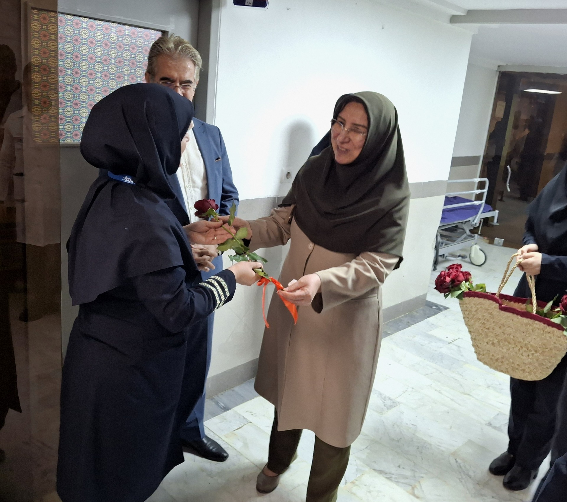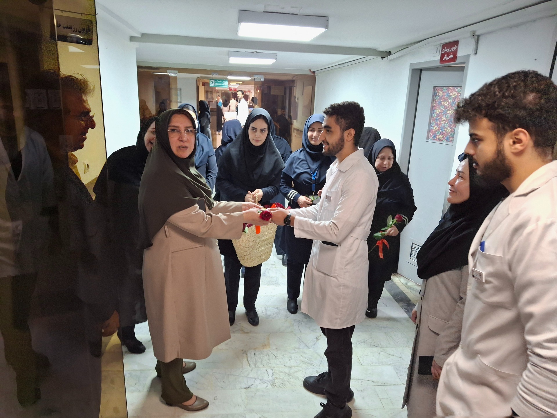 در ادامه رئیس دانشکده با اهدای شاخه گل از پرستاران شاغل در آن بیمارستان و دانشجویان پرستاری کارآموز در محل تجلیل به عمل آورد.