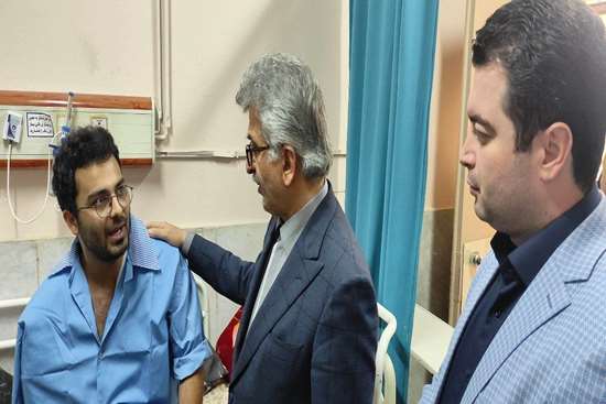 عیادت رئیس دانشگاه علوم پزشکی گیلان از یک اینترن بستری در پورسینا