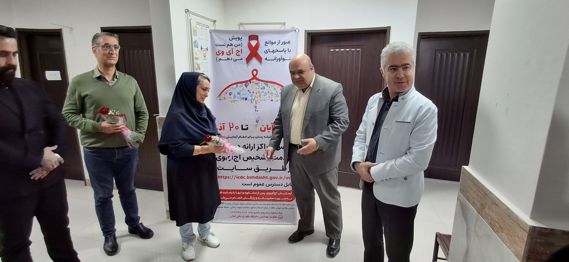 معاون بهداشتی دانشگاه با همراهی معاون فنی معاونت، رئیس مرکز بهداشت رشت و جمعی از کارشناسان، به مناسبت روز جهانی ایدز از زحمات کارکنان مرکز مشاوره بیماریهای رفتاری رشت تقدیر کرد.