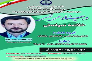وبینار علمی تخصصی خلاصه سیاستی توسط معاونت تحقیقات و فناوری دانشگاه علوم پزشکی گیلان برگزار میگردد.