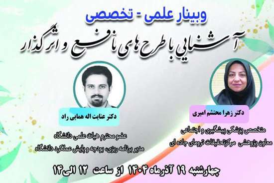- وبینار علمی تخصصی با عنوان آشنایی با طرحهای نافذ و اثرگذار