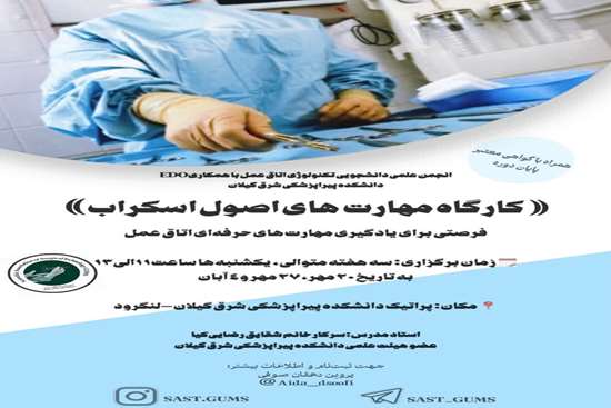 به همت انجمن علمی دانشجویی اتاق عمل، کارگاه «مهارتهای اصول اسکراب» در دانشکده پیراپزشکی شرق گیلان برگزار شد.