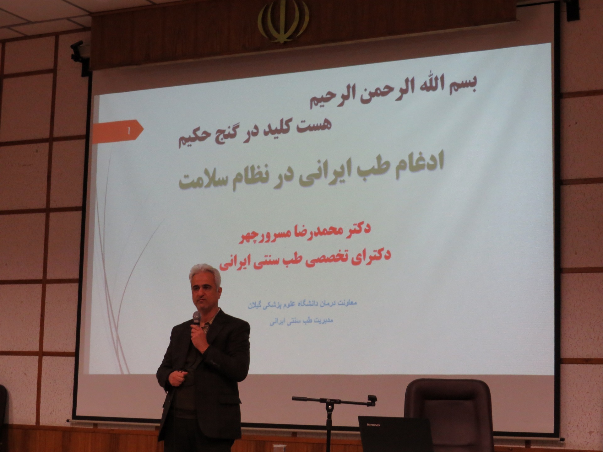 در ادامه ی این کارگاه آموزشی، دکتر محمدرضا مسرورچهر- دکترای تخصصی طب سنتی ایرانی- به تشریح چگونگی ادغام طب ایرانی در نظام سلامت پرداخت. وی در این کارگاه گفت: فلسفه ی طب سنتی این است که در صورتی که امکانات اجرای آن در کشور مهیا است و قرابت فرهنگی بین طب آن مکان با مردم وجود داشته باشد، به کمک طب آکادمیک بیاید.