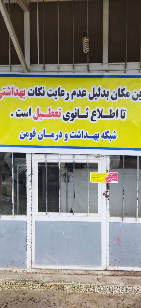 طی بازدید کارشناسان سلامت محیط شبکه بهداشت و درمان فومن، دو واحد نانوایی متخلف، پلمب شد.