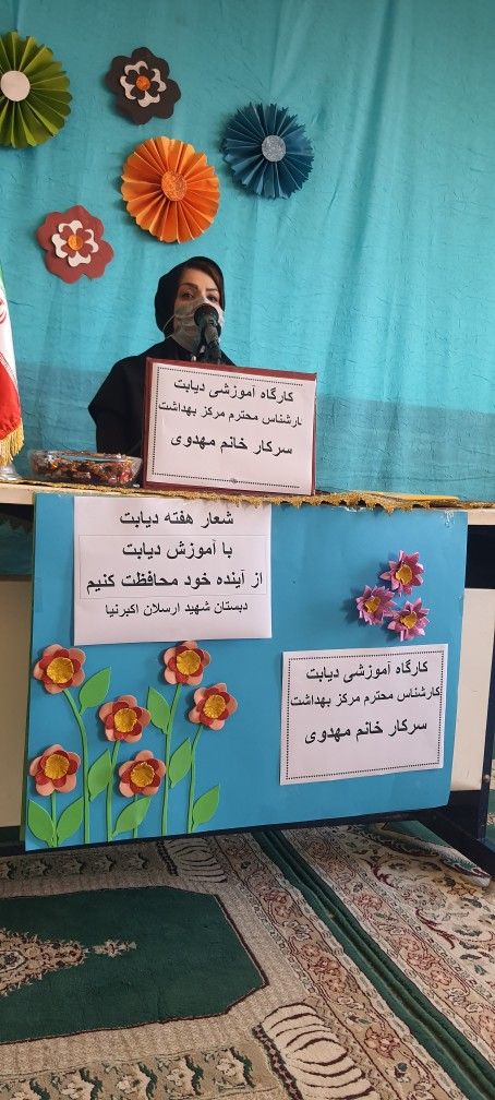 به مناسبت هفته دیابت کارگاه آموزشی دیابت توسط کارشناس آموزش سلامت درمدرسه شهیداکبرنیابرای سفیران ورابطین محلات وهمچنین کارگاه آموزشی خودمراقبتی برای جوانان هلال احمررودسربرگزارشد