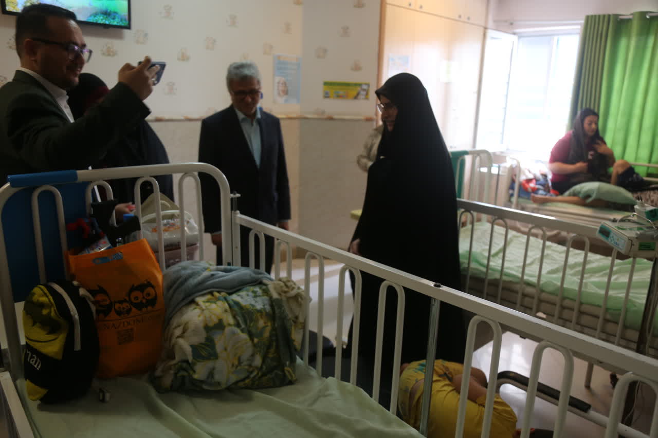 در پایان نیز دکتر محمدتقی آشوبی رئیس دانشگاه علوم پزشکی گیلان با همراهی دکتر نرگس دستیار مدیرکل آموزشوپرورش استان گیلان از کودکان بستری در این مرکز عیادت کردند.